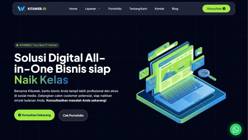 Jangan biarkan bisnis Anda tertinggal dari kompetitor yang sudah lebih dulu hadir secara digital. Dengan KitaWeb, memiliki website profesional kini lebih mudah, terjangkau, dan bergaransi.