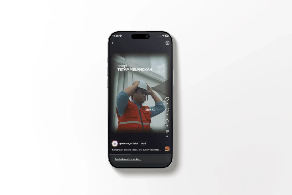 Pengelolaan sosial media PT. Globetek Glory Konsultan melalui Instagram Reels, Instagram Feeds, dan Instagram Stories untuk menampilkan informasi layanan konsultansi teknik, proyek pembangunan, serta konten profesional guna memperkuat branding perusahaan dan meningkatkan kepercayaan audiens.