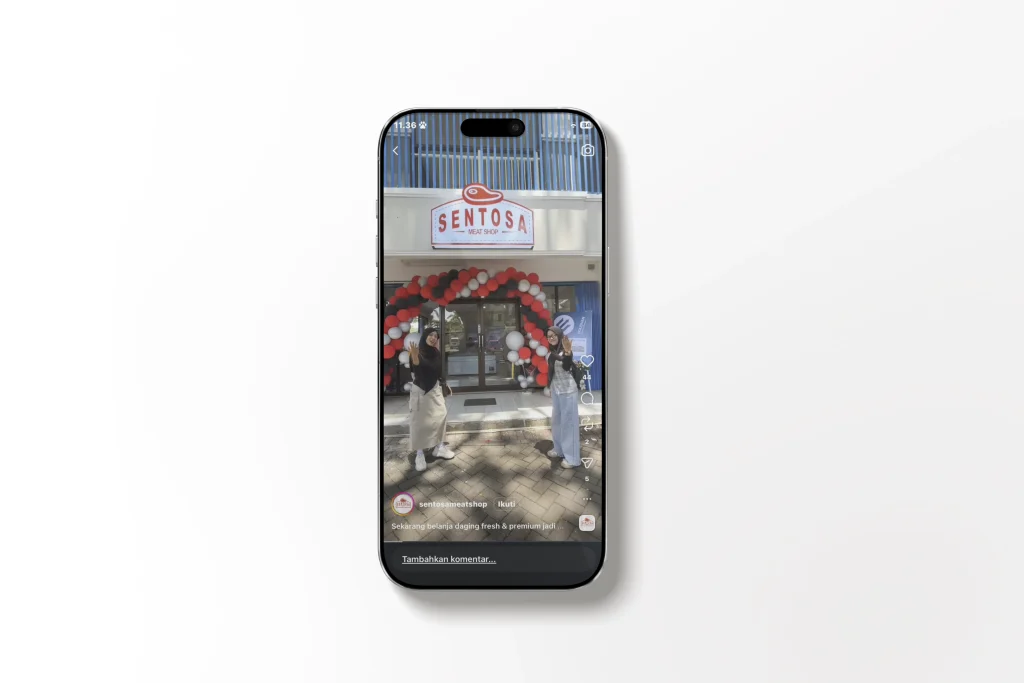 Pengelolaan konten sosial media Sentosa Meat Shop melalui Instagram Stories, Instagram Reels, Instagram Feeds, dan TikTok Videos yang menampilkan produk daging berkualitas, promo, serta informasi menarik dengan konten visual yang kreatif untuk meningkatkan branding dan interaksi dengan pelanggan.