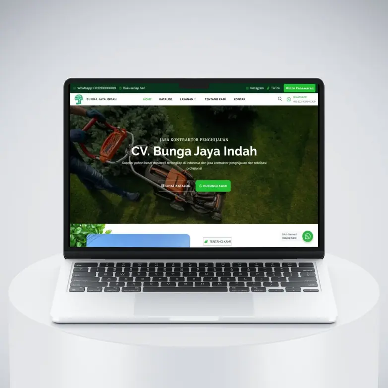 Website company profile CV Bunga Jaya Indah yang bergerak di bidang jasa kontraktor penghijauan, landscape taman, serta supplier pohon besar dan tanaman hias dengan desain profesional